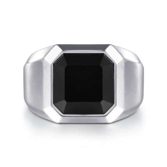 Wide 925 Sterling Silver Signet Ring with Faceted Onyx Stone in Sand Blast Finish Width...