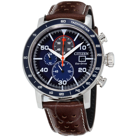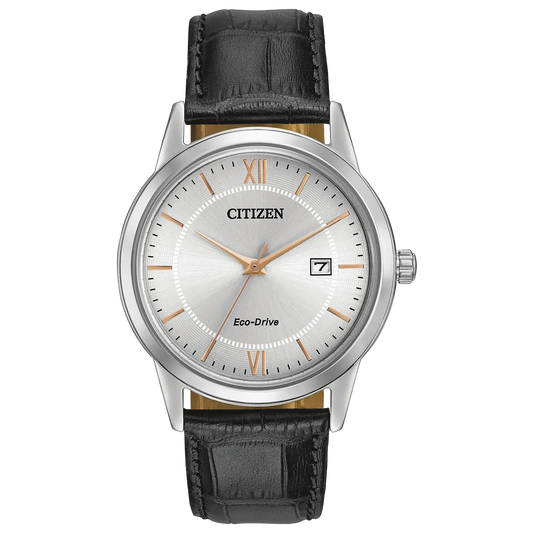 Keep it simple with the classic lines and rich leather strap of these men's CITIZEN®...