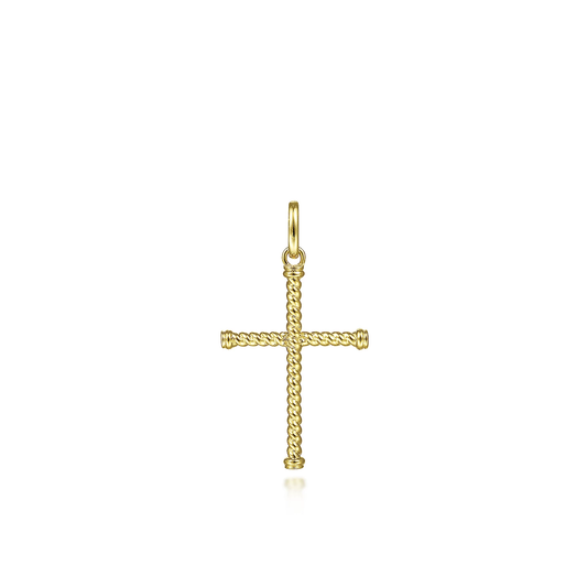 A timeless symbol of faith and strength, this 14K Yellow Gold Twisted Rope Cross offers...