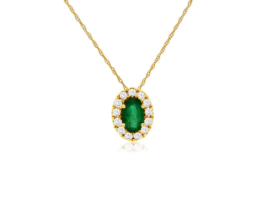 Elevate your look with our exquisite 14K Yellow Gold Emerald and Diamond Pendant. This stunning...