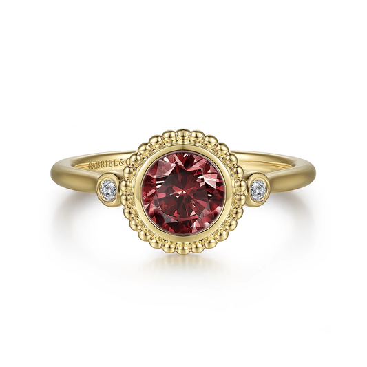 14K Yellow Gold Diamond And Garnet Bujukan Ladies' Ring