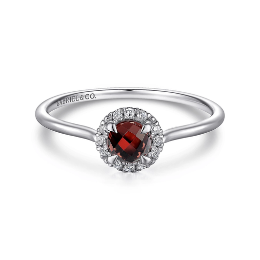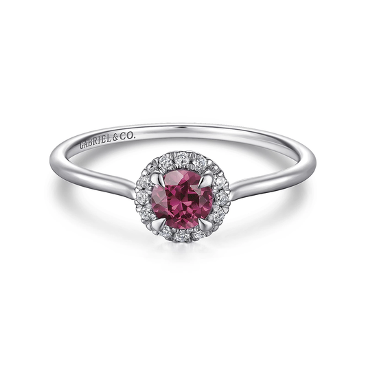 14K White Gold Garnet and Diamond Halo Promise Ring
