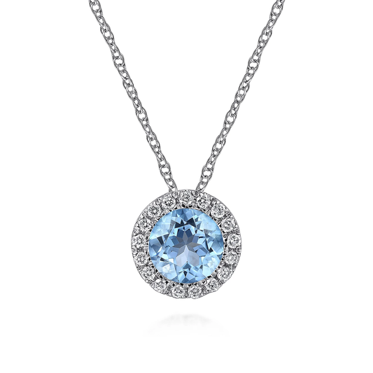 A round cut swiss blue topaz center stone anchors this stunning fashion necklace. The lovely...