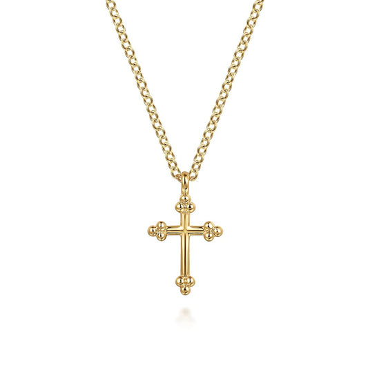 Elevate your style with this stunning 14K Yellow Gold Bujukan Cross Necklace. Crafted with precision...