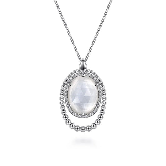 Sterling Silver White Sapphire and Rock Crystal and White Mother of Pearl Pendant Necklace (17.5")