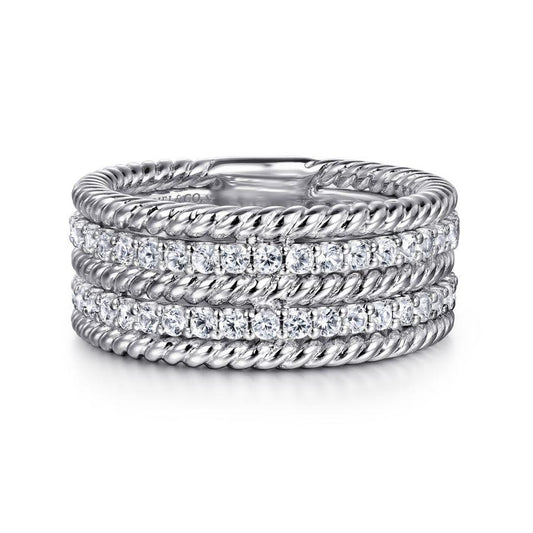 925 Sterling Silver White Sapphire Easy Stacklable Band Ladies Ring Width 8.60 mm Thickness 2.50...