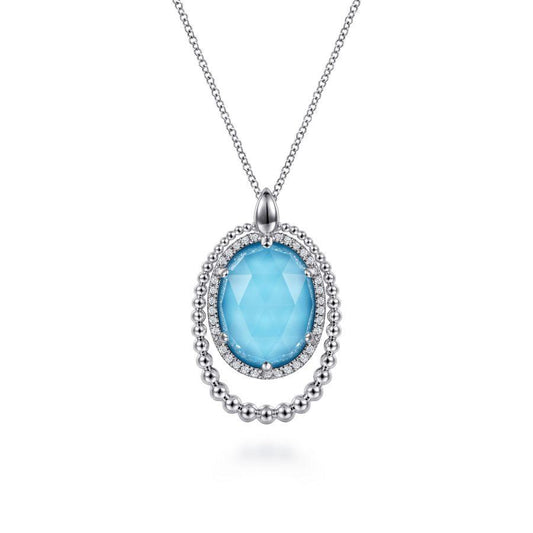 Sterling Silver White Sapphire and Rock Crystal and White Mother of Pearl Pendant Necklace (17.5")