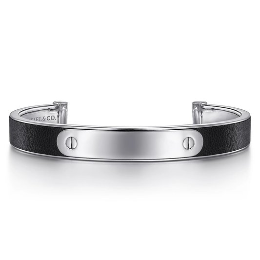 925 Sterling Silver and Leather ID Cuff Bracelet