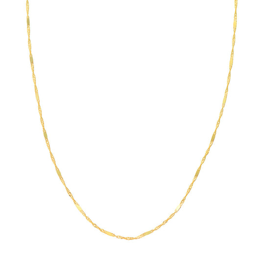 This 14K gold Singapore Saturn Chain features flattened link elements. A unique, modern chain that...