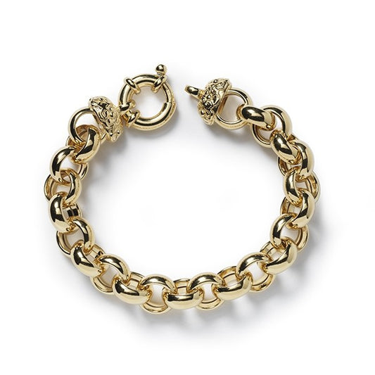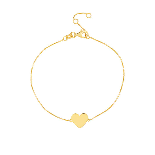 This chain bracelet made in 14 karat yellow gold features a heart and is right...