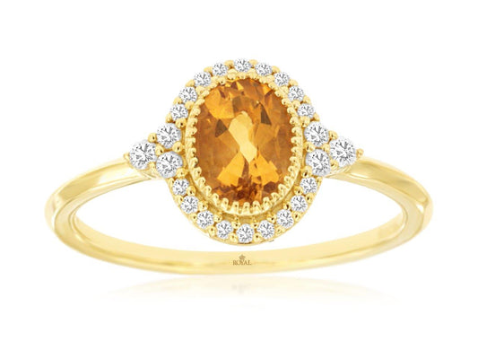 Make a statement with our Citrine and Diamond Halo Ring. Crafted in 14K gold, this...