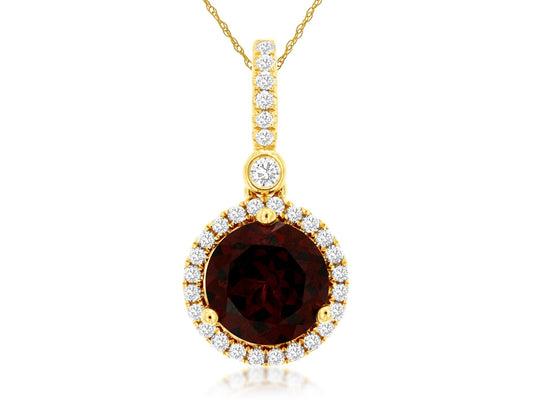 Elevate your look with our exquisite 14K Rose Gold Garnet and Diamond Pendant. This stunning...