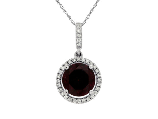 14k White Gold Diamond Halo Garnet Pendant Necklace