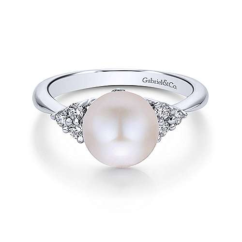 In this polished ring, the spotlight is on the timeless beauty of an iridescent cultured...