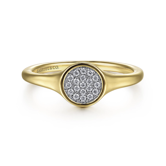 14K Yellow Gold Diamond Pave Mini Signet Ring (.10ctw)