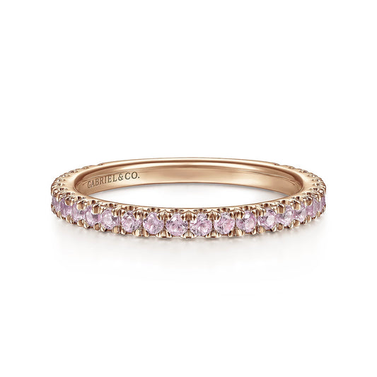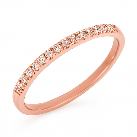 Delicately crafted in 14K rose gold, this elegant stackable ring features a shimmering row of...