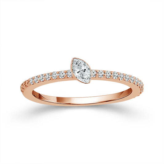 Luminous 14K rose gold ring designed for stacking featuring brilliant 0.10ct diamonds. Marquise shapes create...