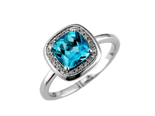 An radiant cut blue topaz (1.60ct) is the striking focal point of this commanding fashion...