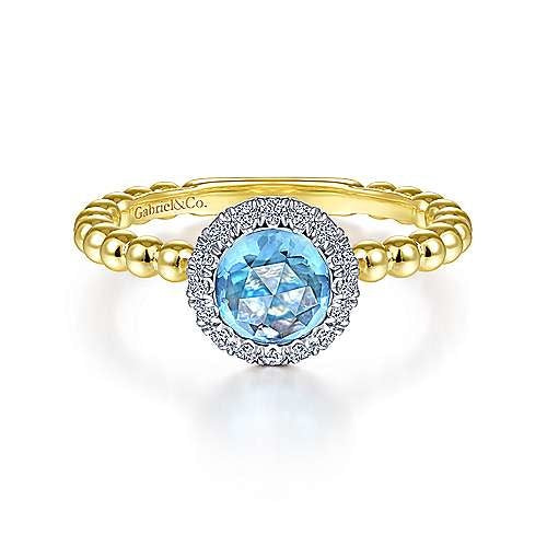 This stunning 14K Yellow Plain Gold Bujukan and Blue Topaz Stackable Ring is the perfect...