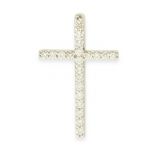 Modest, yet luxurious this 14K white gold cross pendant showcases prong-set .10 ct round-cut diamonds....