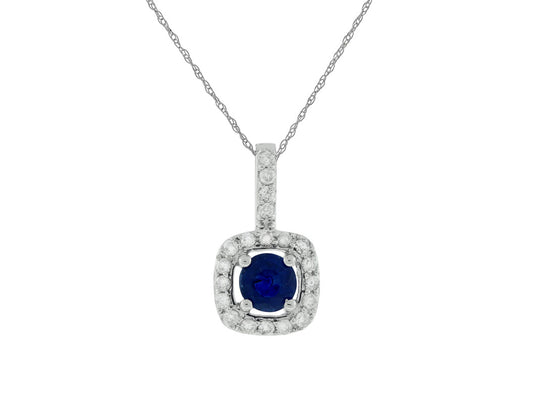 A 0.35ct round blue sapphire is the striking focal point of this petite necklace. The...