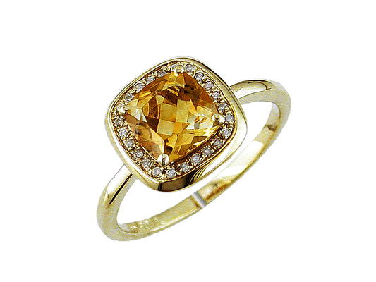 Shimmering 0.09ct accent diamonds frame the vibrant citrine center stone at the heart of this...