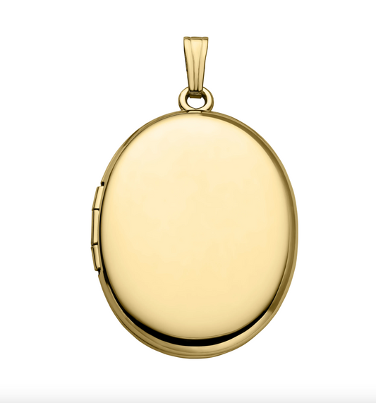 This 14K yellow gold oval locket is a timeless treasure, featuring a sleek, polished finish...