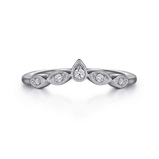Add this vintage inspired curved diamond band to your wedding stack or other favorite ring!...