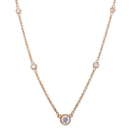 Seven sparkling round diamonds wrap around this necklace, and are set in a 14k yellow...