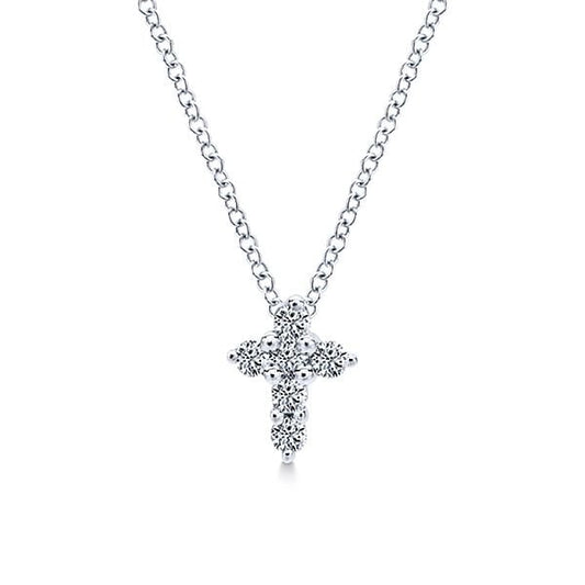 This simple yet beautiful diamond cross necklace is a shining emblem of faith. Round cut...