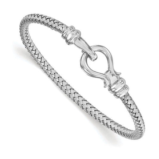 Sterling Silver Hook Rhodium-plated Bangle (7" in length 4mm in width)