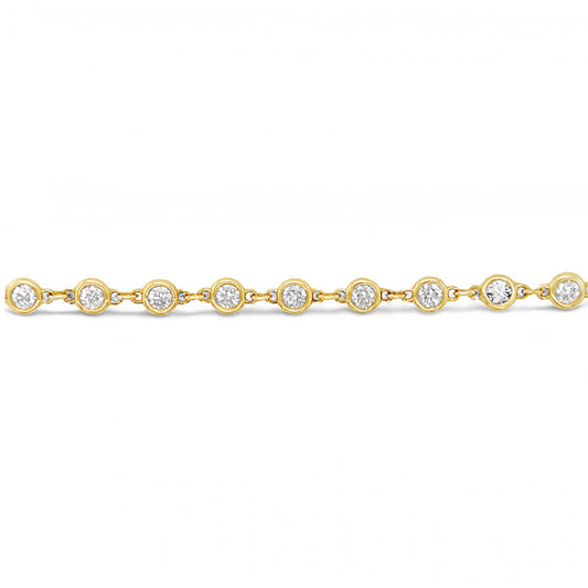 This dazzling diamond tennis bracelet is crafted in 14kt yellow gold. Round brilliant diamonds total...