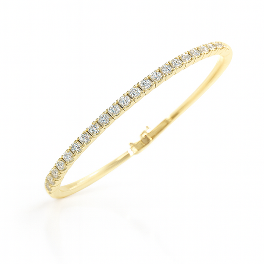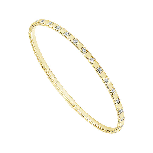 This dazzling flexible diamond bangle is crafted in 14kt yellow gold. Round brilliant diamonds wrap...