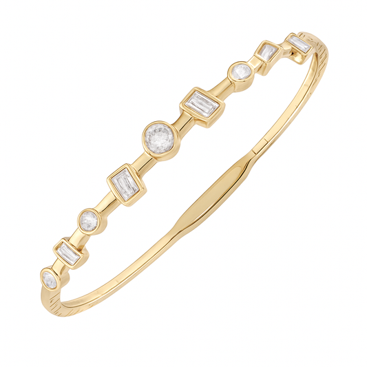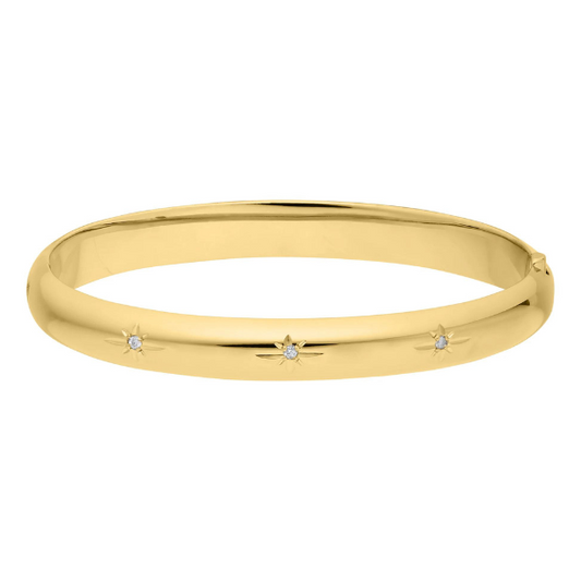 This elegant diamond bangle blends timeless sophistication with modern design. Crafted in 14K yellow gold,...