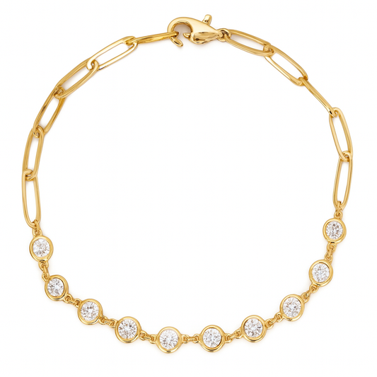 Sleek, modern, and effortlessly luxurious — this 14K Yellow Gold Diamond Bezel Set Paperclip Link...
