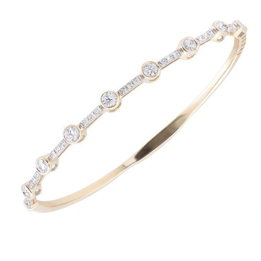 Make a bold yet refined statement with this luxurious 14K Yellow Gold Bangle, featuring a...