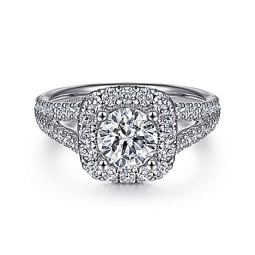 Gabriel & Co. 14kt. White Gold cushion diamond halo ring mounting. (.55ctw)
