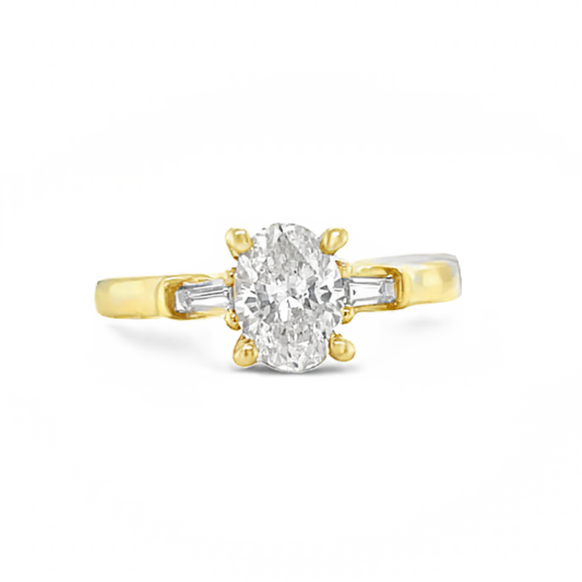 This ring is nothing short of perfection! Featuring a 1.01ct oval center diamond with baguette...