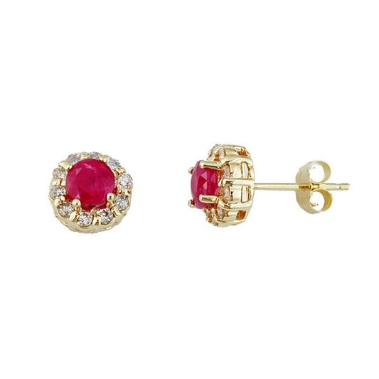 Crafted from luxurious 14k yellow gold, these timeless round studs boast vibrant round 0.45ct Rubies...