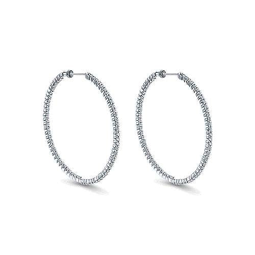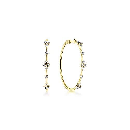 Classic hoop earrings get a sparkling upgrade with round cut diamonds set in a unique...
