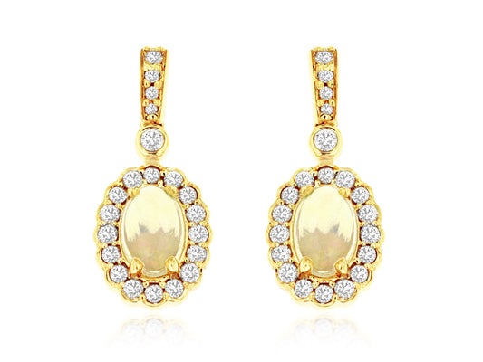 Vibrant oval cut opals garnish these classic October birthstone earrings. Nestled within dangling diamonds (0.33ctw)...