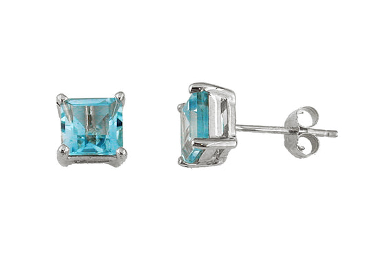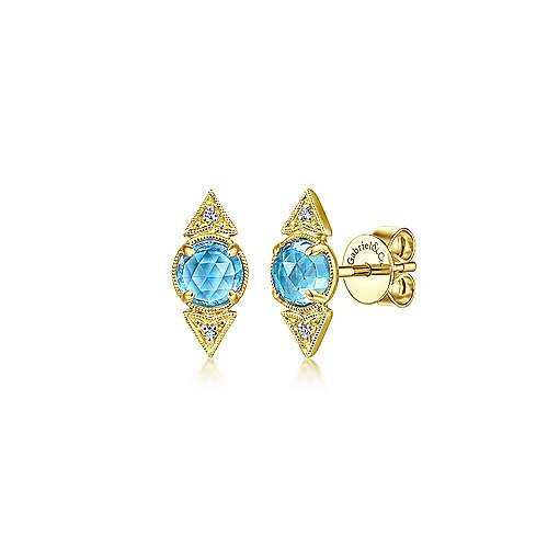Radiant and luxurious, these Blue Topaz stud earrings showcase vivid round cut gemstones in gleaming...