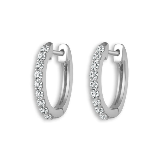 Classic hoop earrings get a sparkling upgrade with round cut diamonds. These petite Huggies are...