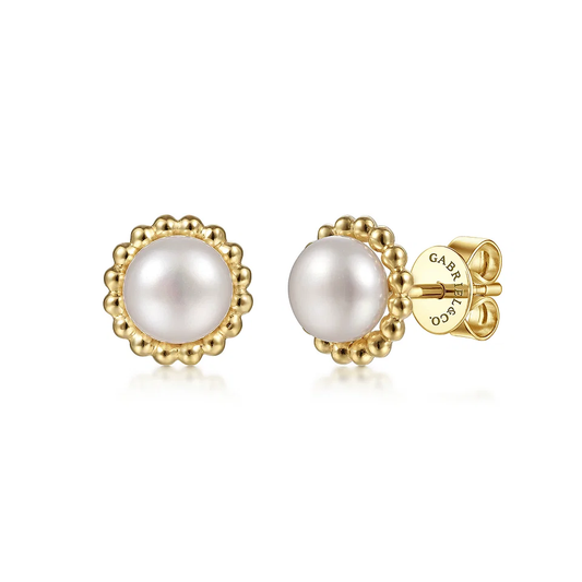 Elevate your elegance with these stunning 14K Yellow Gold Bujukan Pearl Stud Earrings. Featuring a...
