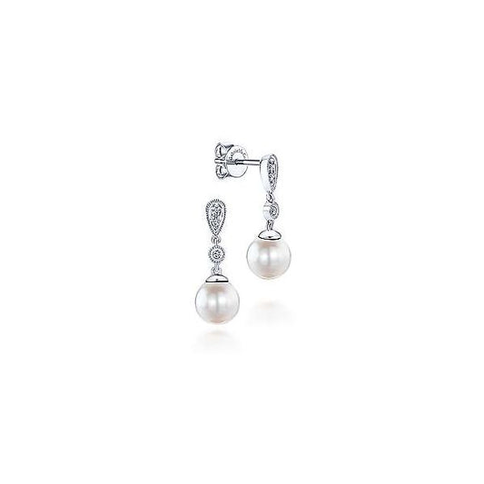Mounted in rich 14k white gold, these timeless drop earrings showcase a pair of lustrous...