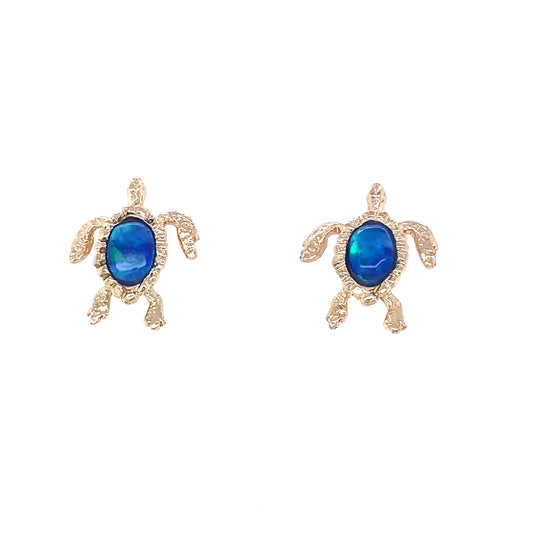 Crafted in 14k yellow gold, these opal turtle earrings are perfect for any ocean lover!...