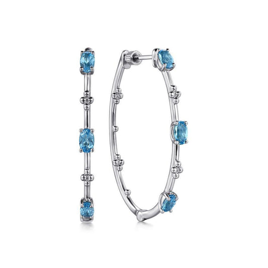 925 Sterling Silver Swiss Blue Topaz Bujukan Hoop