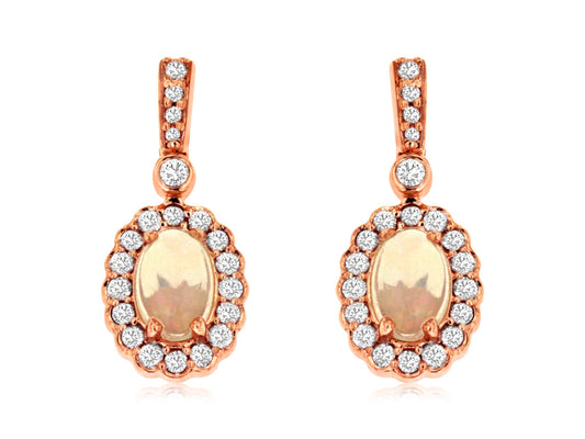 Embrace the enchanting beauty of our 14K Rose Gold Opal and Diamond Earrings. Exquisitely crafted,...