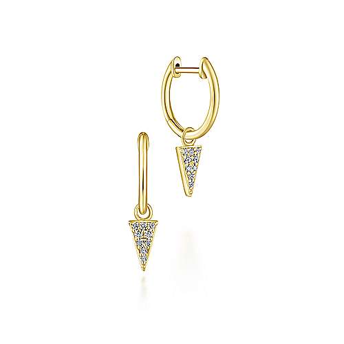 Enhance your ensemble with these stylishly simple 14kt. yellow gold drop earrings. Dangling diamond encrusted...