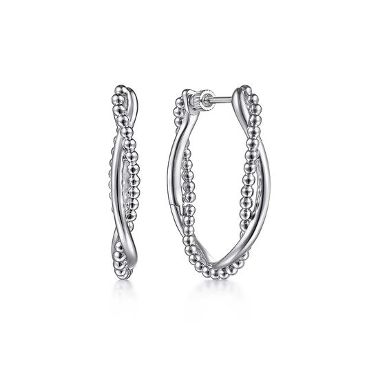 These enchanting Cris Cross J hoop earrings are a masterpiece of sterling silver and 14K...